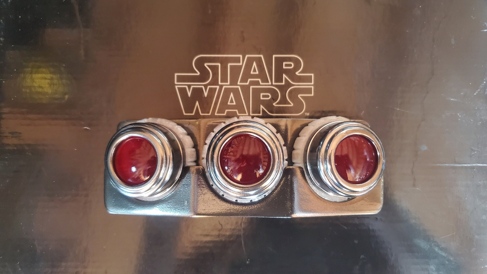 - Features an inspired “Smuggler’s Comlink” 549 edition magnetic badge.
