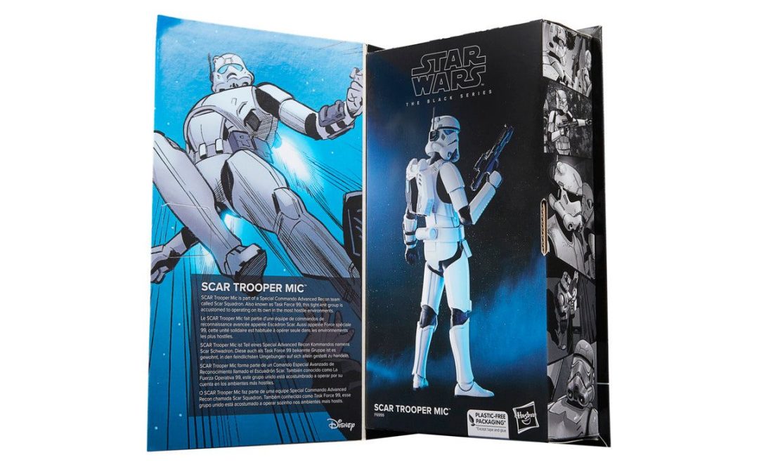 - This collectible 6-inch-scale Black Series figure is detailed to look like SCAR Trooper Mic from Star Wars comic books, featuring premium detail, multiple points of articulation, and comics-inspired blaster accessories.